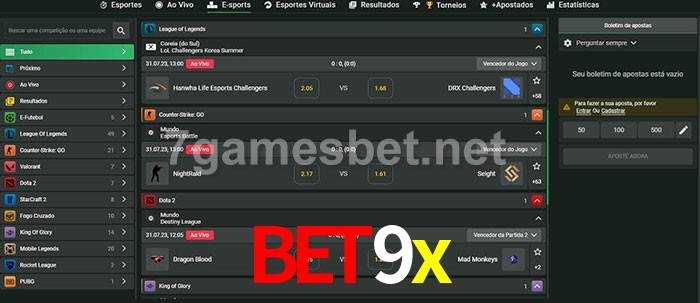 O bet9x oferece uma grande seleção de opções de apostas em e-sports com probabilidades competitivas